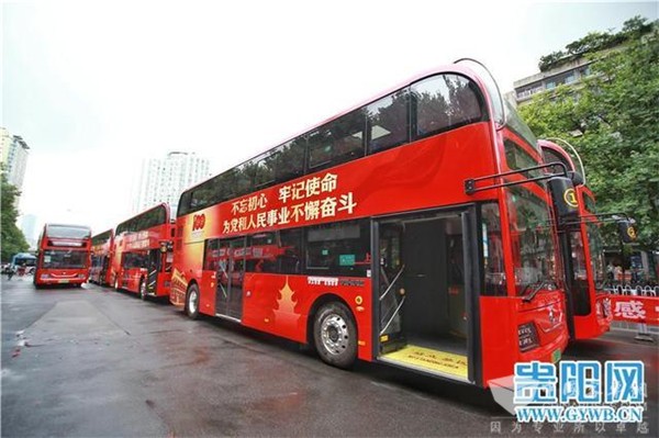 据贵阳公交集团党委副书记、总经理孙林介绍,贵阳双层公交车,自1995年上线至今已有26年。而此前运行的1、2路双层公交车车型已有13年时间。为适应城市发展的需求,打造高品质的出行服务,在建党百年之际,公交集团此次将1、2路公交车全部更换成36辆全新的纯电双层公交车。其中1路公交车打造成“建党百年红色宣传公交专线”,车身整体以红色为基调,建党100周年庆祝活动标识和遵义会议会址、甲秀楼交相辉映,打造流动的红色风景线,献礼中国共产党成立100周年。