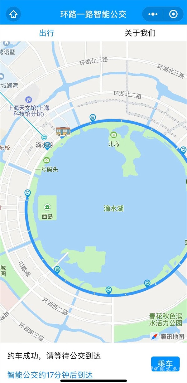 2021年8月17日,临港环湖一路智能网联及自动驾驶公交在滴水湖畔正式启动载人示范应用。不久前,中车电动自动驾驶客车获得上海市首张智能网联公交示范应用牌照,成为上海首个示范应用的自动驾驶公交。
