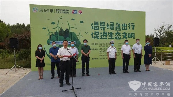 青岛市2021年绿色出行宣传月和公交出行宣传周系列活动以习近平生态文明思想为指导,进一步助力碳达峰、碳中和,共创文明和谐的公共交通出行环境。主办方相关领导和来自青岛市公共交通行业的数十位代表及嘉宾出席了本次活动启动仪式。启动仪式上,青岛市交通运输局党组成员袁海波致辞。