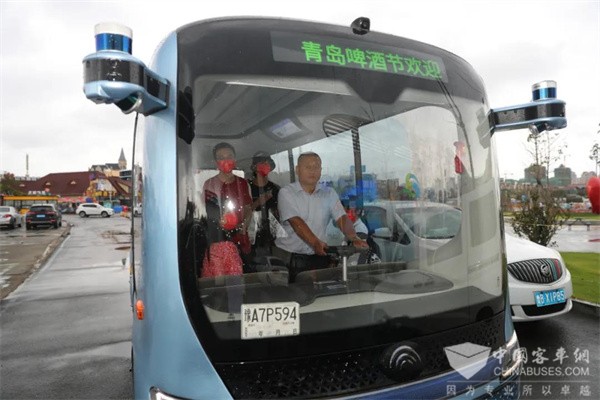 9月19日上午,真情巴士在西海岸新区金沙滩啤酒城开展了第三期市民开放日活动,一辆自动驾驶公交车同步“亮相”,供市民“抢鲜”体验试乘。这是青岛市首次面向市民开展自动驾驶公交车试乘,20余名市民代表分三批进行体验。