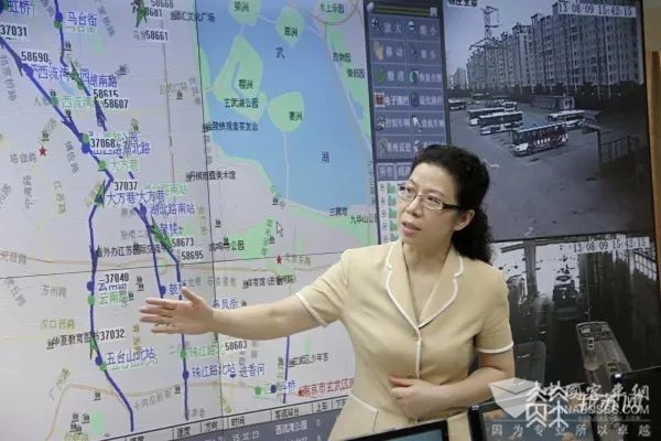 2014年的一次代表接待日活动中,曹玉莉代表在她工作的南京公共交通(集团)有限公司迎来了部分乘客,大家就公交车线路优化、准点到站等问题向她反映。曹玉莉代表就站到了公交集团指挥中心的LED大屏前,向他们介绍当时“智慧公交”的技术应用情况——照片上记录的正是这一场景:“车辆的发车时间和发车点,包括场站建设在图表上都能反映出来。后来老百姓就提出来,能不能不仅仅说是公司自己拥有这个技术,应该向社会开放。”