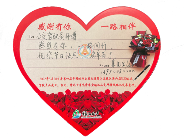 三、自公开信发布之日起,每天的8点至17点,市民可前往金山公园首末站、三茅宫首末站、运河路公用站、大东首末站、丹徒枢纽站以及江大枢纽站免费领取“感谢卡”。我们也会安排志愿者在市区主要公交站点发放“感谢卡”,欢迎广大市民踊跃领取。