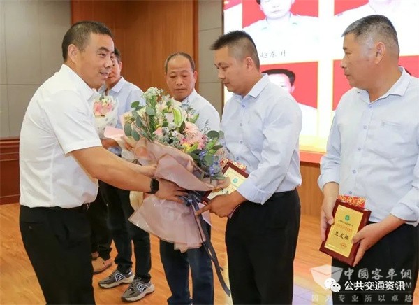 资料图:2021年5月20日,金华市交投集团副董事长、市公交集团董事长楼益康为百万公里安全驾驶员颁奖、献花。二、弘扬先进典型
