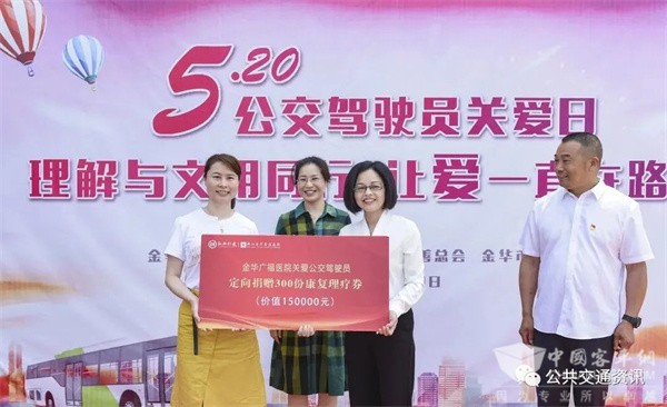 资料图:2021年5月,金华市慈善总会秘书长詹霞,市广福医院党委副书记、副院长冯丽萍代表广福与市慈善总会,定向捐赠金华公交驾驶员价值150000元的健康理疗券300份。金华公交集团工会主席徐敏代表公交集团接受捐赠。三、展现公交风采