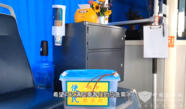 为了更好地服务乘客,方便市民出行,张龙子通过日常观察和听取乘客建议,不断地增加着车内的便民服务设施,如饮水机、充电宝、雨伞等等,这些“装备”总能在不经意间解决车上乘客的“燃眉之急”。在为乘客提供舒适乘车环境的同时,张龙子还注意做好车厢文化宣传,他利用中国结和宣传贴画等元素,把十米车厢布置成了一道靓丽的风景线。