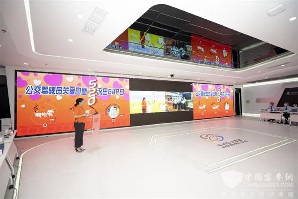 2022年5月20日上午由深圳巴士集团主办、各二级单位协办的“5.20全国公交驾驶员关爱日”暨520深巴EAP日活动在公交大厦智慧管理中心举行,集团党委书记、董事长戴斌,党委副书记、总经理顾楠洲,党委副书记、工会主席刁岚,党委委员、副总经理高波,安全总监刘刚和深巴基层各岗位员工代表共同参加活动。