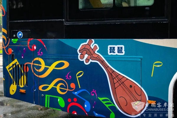 车身底色以鲜艳的色块拼接,展现民族音乐中行云流水的感觉,辅以音符点缀,让观众仿佛徜徉在音乐海洋中。
