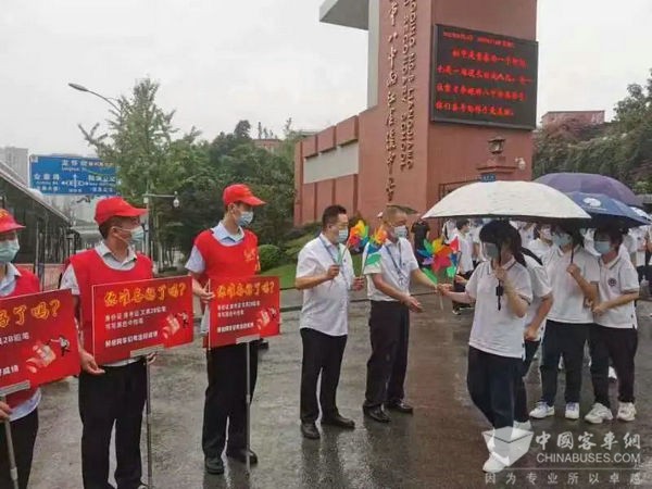 公交青年志愿者也积极参与到本次疏运行动中,他们为考生送上福袋和风车,预祝同学们一帆风顺,考出好成绩。同学们热情洋溢,纷纷对志愿者表示感谢。