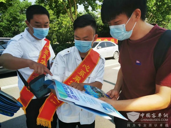 6月13日,济南公交组织9支宣传服务队到华山珑城、兴旺家园、匡山小区等社区、学校、企业进行节能宣传,倡导广大市民共同选择绿色低碳的生活方式。