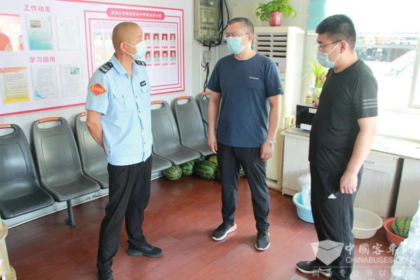 集团领导走进车厢和站务亭,为驾驶员送上矿泉水、西瓜等防暑降温品,田序壮对他们高温天气仍坚守岗位、默默付出的精神表示感谢,并叮嘱大家不仅要做好疫情防控,更要做好高温防护措施,做到营运安全两不误。