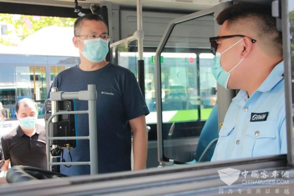 在威高广场枢纽站,田序壮了解了新建公交候车亭使用和新车上线运营情况,并就工作近况、薪资发放和安全运营等方面和驾驶员进行现场交流,认真听取了他们的意见建议。在实验中学枢纽站,田序壮与一线驾驶员进行亲切交谈,关切询问大家新能源车辆驾驶的舒适度和操作性等情况,了解乘客对新车上线的反响。