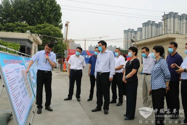 7月13日,省交通运输督导检查组组长、交通运输厅党组书记、厅长徐强一行到郑州公交集团陈寨公交场区实地督导检查防汛工作。