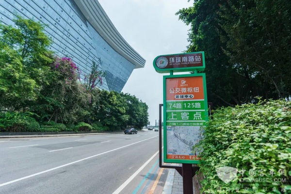 运用“B+R(Bike and Ride)”绿色交通模式,在环球中心4个方向的出入口分别设立上下客点位(74路、125路),实现“公交+地铁+共享单车”无缝接驳,有效缩短换乘时间,提高公共交通运行效率,服务片区市民出行。