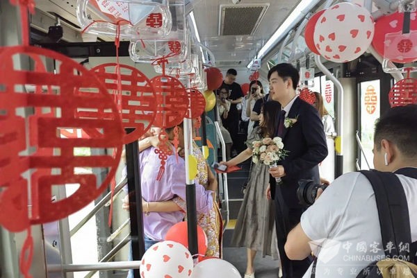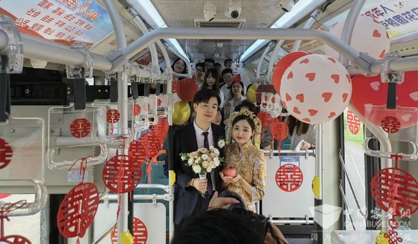 “爱情需要纪念日,生活需要仪式感,今天的感受很特别”。新娘说,“亲朋好友都聚集在宽敞的公交车里,一路欢歌笑语,特别有仪式感、氛围感”。