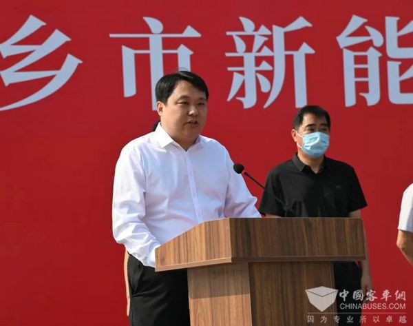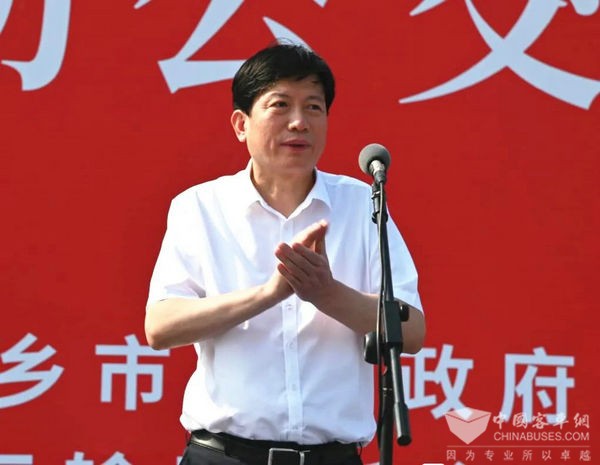 市委常委、常务副市长孙栋主持仪式。他指出,集中投用新能源纯电动公交车,是深入践行习近平生态文明思想、大力实施城市公共交通优先发展战略、创建国家级“公交都市”示范城市的重要举措,对构建文明、节约、绿色、低碳的城市公共交通出行模式,倡导“低碳生活、绿色出行”理念,助力实现“碳达峰、碳中和”目标具有重要意义。