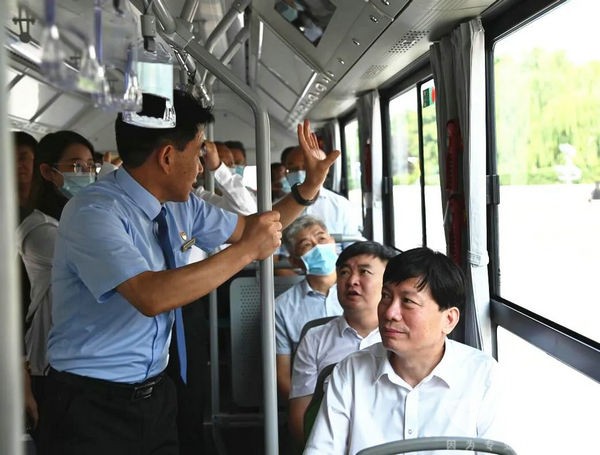 与会领导还现场乘坐新能源纯电动公交车巡游,倡导绿色出行。