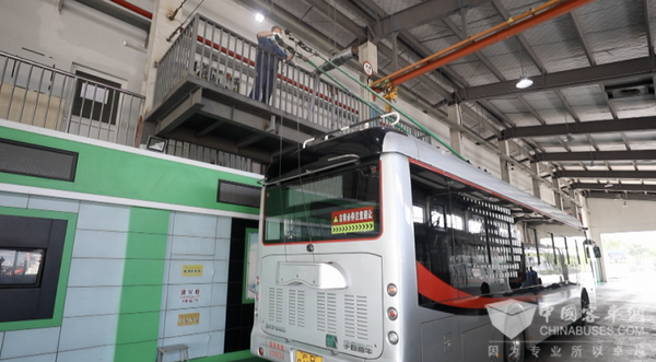 记者一早在71路公交始发站上海申昆路枢纽看到,停保场里整齐停放数辆等待“体检”的公交车。车间里,维修人员正忙着对车辆进行检修,汗水像雨滴一样顺着头发往下滴,背后的工作服已结了一层盐霜。秦立是这个维修车间班组组长,从事维修工作已经30年了,秦立告诉记者,夏季高温暴晒对电车绝缘零件损坏较多,雨天电车线路安全隐患大,所以对车辆检修的第一步就是要检查车顶集电杆的绝缘零件,如果绝缘棒破损就会影响安全,来不得半点马虎。