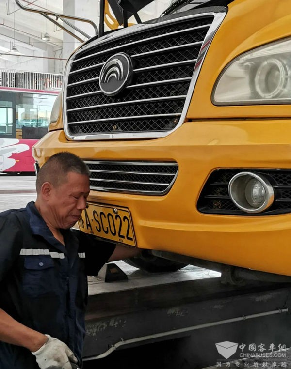 开学前,保修车间的修理工师傅们对区内校车由内至外逐一进行全面“大体检”。师傅们一丝不苟地对制动、转向、发动机、照明、喇叭、停车警示牌、雨刮器、后视镜等各个校车部件进行检测,及时修复排查出的故障。校车驾驶员们则自查车辆消防器材、安全带、安全锤以及车载医药箱完备情况,并对空调滤网和车厢内部进行全面清洁消毒。