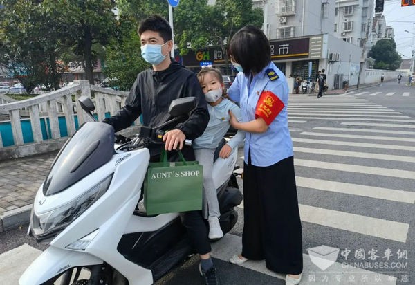 公交志愿者为萌娃护学