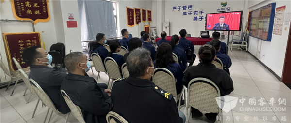 基层党支部广大党员在公交场站收看大会