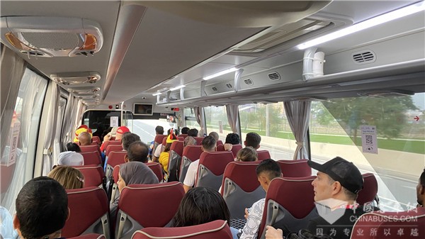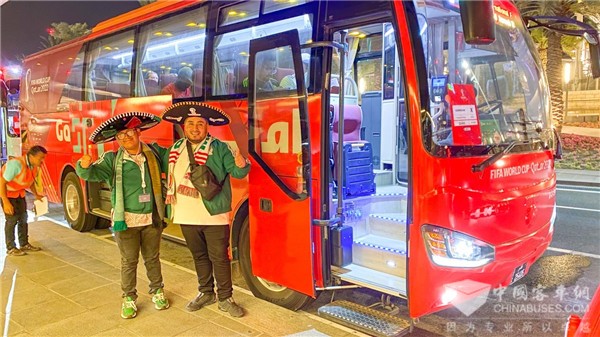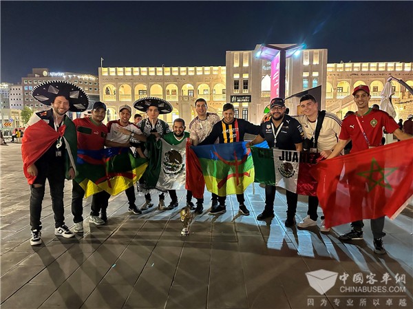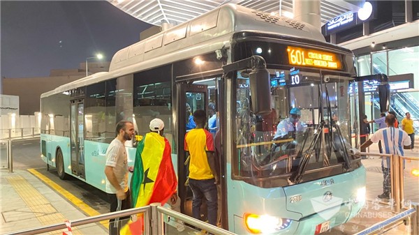 人流熙攘,但组织有序。从球迷们走出机场那一刻,就能看到一排排接驳巴士列队等候,它们多条线路并发,去往不同的酒店或景点。而从酒店、地铁站直达体育场的巴士,更是昼夜不停穿梭,球迷只要带上本次赛事的“一卡通”——Hayya卡,就能免费乘坐。这些巴士主要来自中国苏州金龙海格客车,舒适、安静、快速,受到球迷一致好评,引发当地民众花式点赞。