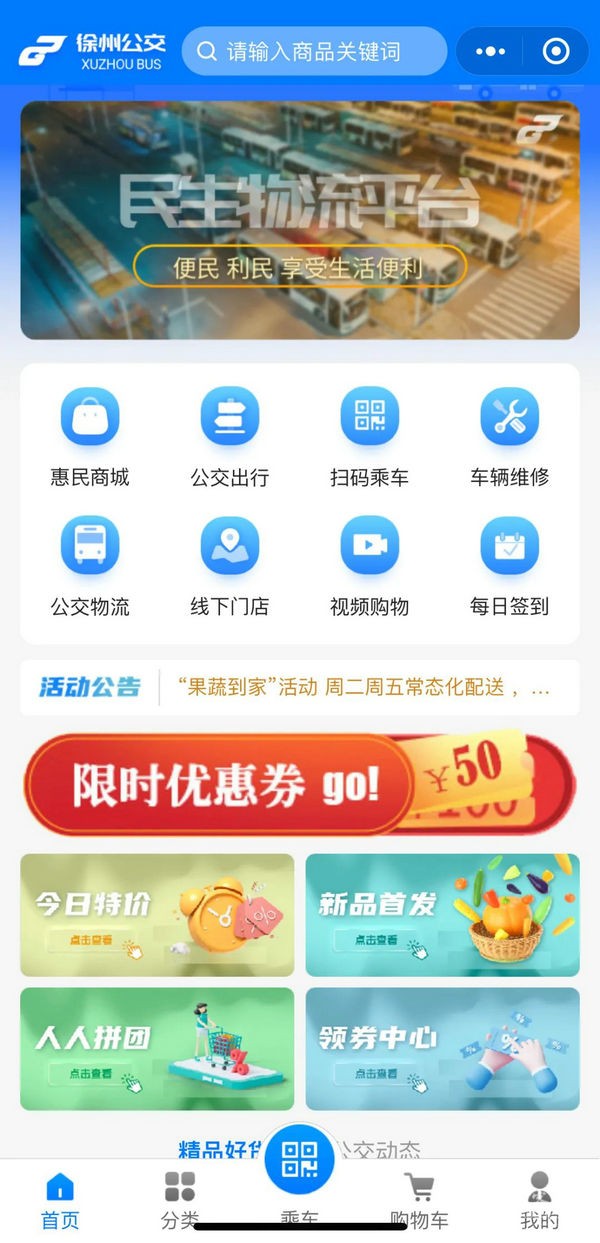 公交民生物流平台现已建立“平台+农户+基地+公交场站”的蔬菜及日常生活食品线上销售模式。一方面为我市居民提供精选、特色、价廉、放心、健康的优质蔬果生鲜。另一方面做好公交职工福利的保障,为职工们提供经济实惠的福利,以职工内需为出发点,做优平台。此外,除可在“惠民商城”网上购物外,平台还提供了“公交出行”、“扫码乘车”、“车辆维修”、“公交物流”、“线下门店”、“视频购物”等便捷、优惠的生活服务。