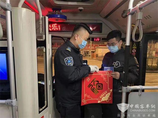 广大公交驾驶员坚持做好车辆清洁、消杀等工作,切实筑牢安全防线,为乘客提供了安全放心的公共交通出行环境,同时微笑服务、礼貌待客,向市民乘客送去新春祝福。为营造欢乐、祥和的节日氛围,除夕当天,济南公交向每条线路首班车第一位乘客,送上定制“福”字和新年好礼,同时积极开展志愿服务活动,努力为市民乘客提供优质出行服务,营造欢乐祥和的节日氛围。