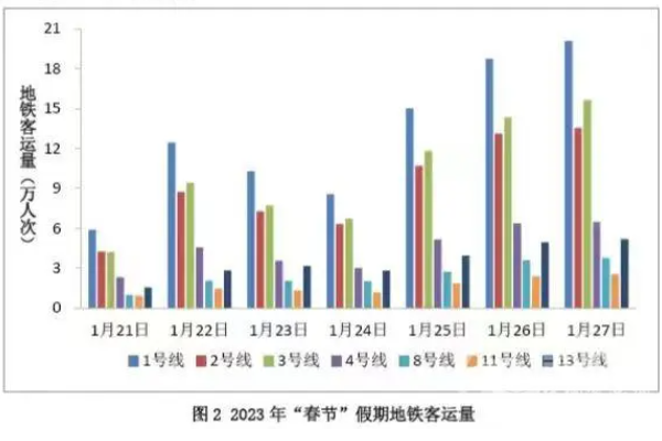 2023年春节假期地铁客运量。
