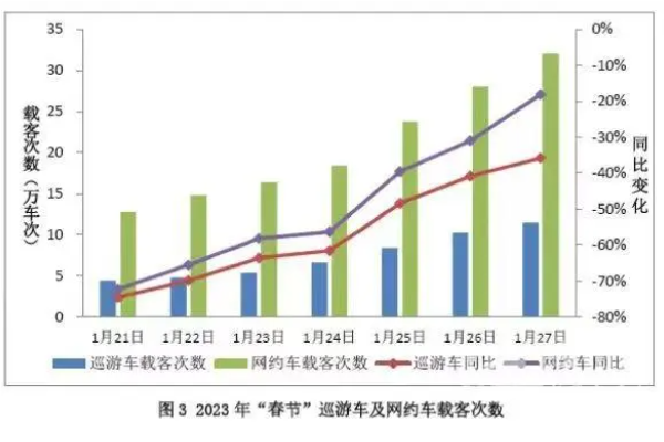 2023年春节巡游车及网约车载客次数。