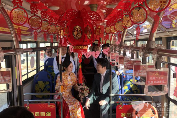 连云港小夫妻“低碳”迎亲,公交车变婚车