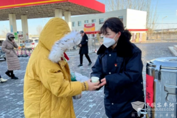 为给广大司乘人员提供安全、畅通、舒心的歇息环境,酒泉服务区精心熬制了红糖姜枣茶,为过往司乘人员驱寒送暖。