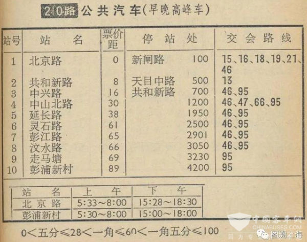 进入1980年代,运营已经相当成熟的46路高峰定点大站车正式固化为210路高峰线,继续为市民提供服务。