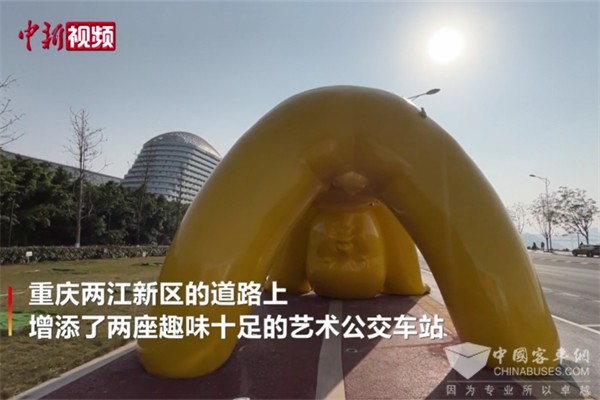 2023年春节后,重庆两江新区的道路上,增添了两座趣味十足的艺术公交车站。