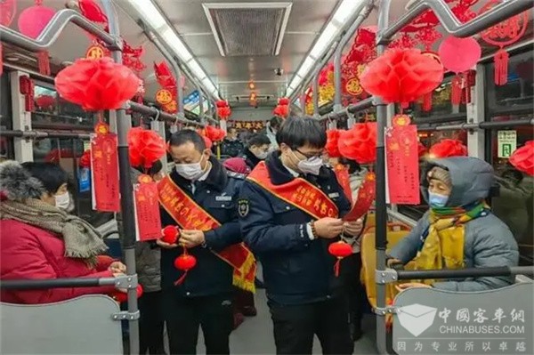 为营造元宵佳节热闹、欢乐、喜庆的浓厚氛围,2023年2月4日至2月5日,烟台公交集团在赏灯观光定制专线组织开展“坐公交,猜灯谜,长知识,欢欢喜喜闹元宵”活动。