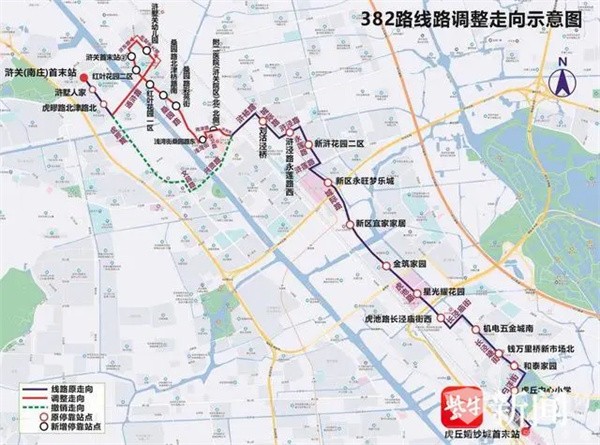 高新区交通运输部门充分考虑周边道路资源、公交线网布设实际,对382路公交车进行了优化调整。其中,浒墅人家与红叶花园的之间的公交行驶时间降到了10分钟。新线路总长14.5公里,还覆盖苏州大学附属第二医院浒关院区、新区城铁商圈、金阊新城等多处客流集散点,满足了乘客配药就医、走亲访友、购物休闲等多种需求。