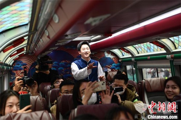 当日傍晚,话剧巴士从成都著名商圈春熙路出发。演员随即登场,介绍故事背景。随后的表演中,每位乘客参与其中,不断推动故事线向前发展。在曲折、幽默且充满戏剧性的剧情中,乘客沉浸体验着话剧演出,也不断欣赏着车窗外的成都景点。 “我们的剧本是专门结合成都的特质打造,这是一座充满活力和创新的城市。”开心麻花西南产品中心总监肖立说,话剧巴士通过“美食+交通+话剧+旅游”跨界融合的夜间消费新场景,展现“天府之国”魅力。 成都文旅集团相关负责人介绍,话剧巴士票价118元/人起,将于2月14日正式上线。其运行时间为每周三、周五、周六、周日17:30,从最热闹的春熙路出发,途经大慈寺、城市音乐厅、九眼桥、东风大桥等地标景点,演出约60分钟。