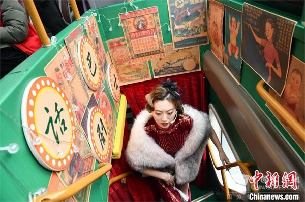 据了解,这辆双层话剧巴士由成都文旅集团、成都公交集团和开心麻花西南联合打造。乘客可以一边坐巴士游成都,一边欣赏沉浸式话剧,同时品尝川味零食。 中新网记者在现场注意到,这辆巴士内部被打造为民国复古调性,上层是演出空间,下层为演出后台,整体是一个半封闭式的浸没艺术装置空间。