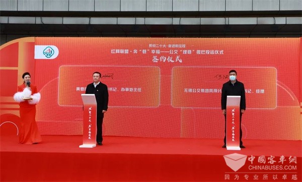 仪式上,黄巷街道党工委副书记、办事处主任任钢与集团公司凤翔分公司党总支书记、经理何波共同签订公交微循环18号线“理巷”微巴的运行合作协议。