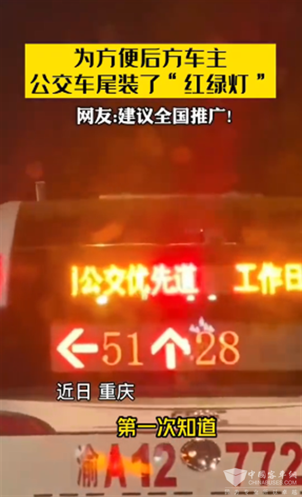 重庆用“黑科技”宠市民上热搜:公交车尾屏可显示前方红绿灯信息