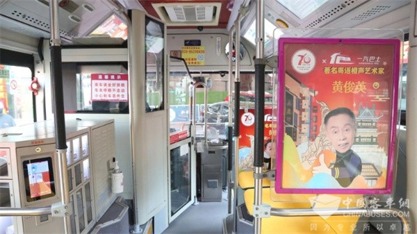 此外,一汽巴士还联合黄俊英工作室精心挑选了《肥仔米》《三六九查户口》《成语新篇》等9条经典粤语相声片段,市民乘客只需扫一扫车厢上的二维码,即可欣赏“广东人自己的相声”。“黄俊英老师陪伴着我们这一代人成长,是家喻户晓的相声大师、开心果,带给我们无限笑声。坐公交还能听到相声,很有特色。”居住在西华路附近的黄姨特意前来搭乘体验。