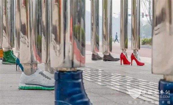 ▲2023年3月5日,两江新区博览中心北站,公交车站立柱“穿”上了样式各异的鞋子。