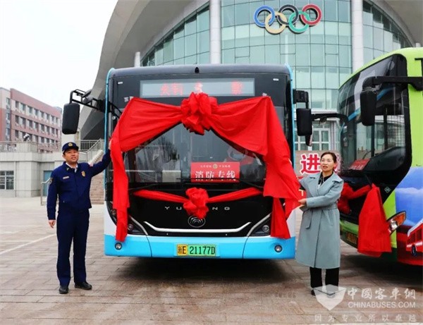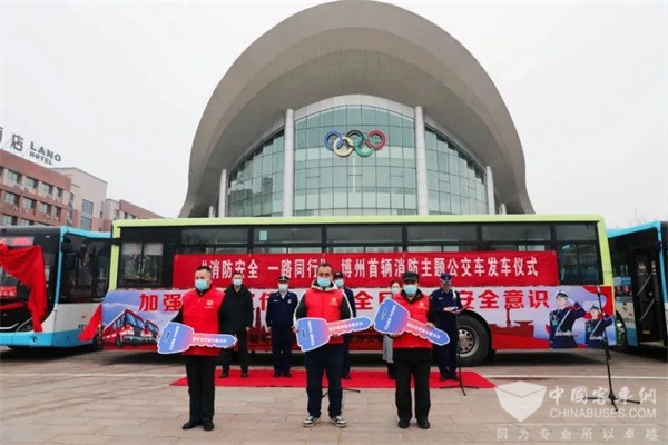 仪式上,与会领导对消防志愿服务队、消防公益使者、消防主题公交车驾驶员进行表彰并发放车钥匙,为消防主题公交车揭牌。志愿者代表、消防公益使者代表、公交公司代表发言。