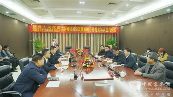 2023年3月22日,石家庄公交集团与赵县人民政府签署共同推进旅游发展战略合作框架协议。双方携手推进“公交+文旅”模式在赵县落地,打造连接市民与赵县美景间的桥梁。