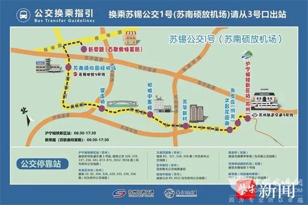 “苏锡公交1号”由沪宁城铁新区站首发,共设置8个停靠站点:朱家庄浒关、文昌花园南、苏华新村、相城中医院、望虞桥、苏南硕放机场,最终到达无锡的新荣路(百联奥特莱斯),全程33.4公里,同时接驳换乘无锡地铁3号线和苏州轨道交通3号线。