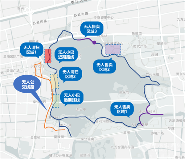吴中区引进自动驾驶龙头企业百度 Apollo,在太湖西山岛打造全国首个“自动驾驶生态示范岛”,开展无人清扫、无人公交、无人小巴、无人售卖车等应用,打造“智慧文旅+车联网产业”双智样板。
