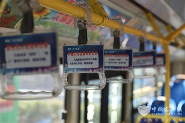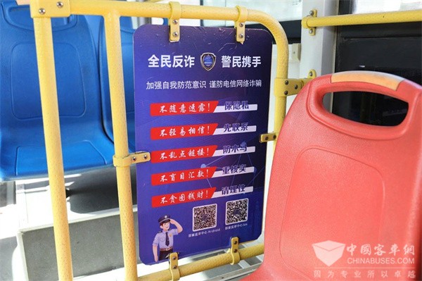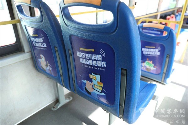 公交车是群众出行的重要方式之一,“反诈公交”正是利用其覆盖性广、流动性强、拉载群众多等特点,通过在车辆外部涂装反诈宣传标语和防范提醒,在车厢内的把手、投币箱、座椅背后等醒目位置张贴反诈宣传标语,同时在车内多媒体显示屏上循环播放阳城公安民警与本地网红联合打造的反诈宣传视频,让“反诈公交”成为最贴近群众生活的移动反诈宣传车。