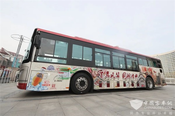 “百年风华 国潮经典”主题车在古文化街码头展出三天后,于4月3日回到线路运营。这辆“名牌加身”的1路公交车由长春道津塔公交站发往乐桥里站,线路贯穿和平区、南开区、红桥区和河北区,途经市中心劝业场、百货大楼、滨江道等各大主要商业区。公交车流动宣传的特殊性,不但能进一步弘扬天津优势商业文化,同时也增强了老字号企业市场竞争能力。