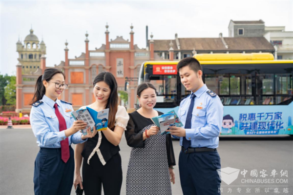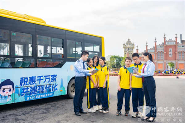 伴着四月的春风,第32个全国税收宣传月如约而至。2023年4月3日,在著名侨乡江门开平,数辆印有“税惠千万家 共建现代化”和“税游侨乡”宣传标语的公交车“从新”出发,化身成移动的“税宣课堂”,满载税惠春风直达赤坎古镇景区。