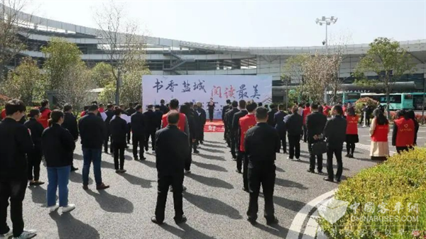 “让我们共同点亮阅读之灯,开启书香之门!3、2、1,开启!”2023年4月17日上午,在第28个“世界读书日”即将到来之际,盐城交投集团“书香盐城 阅读最美”主题公交“书香号”发车仪式,在盐城市综合客运枢纽西广场公交回车场举行。