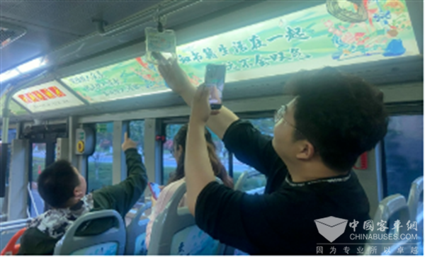 登上“书香号”主题公交,随处可见的阅读元素扑面而来,车内扶手、座椅后背、侧方宣传栏都张贴着宣传海报。市民乘客扫描扶手上“书香盐城”二维码,可随时阅览电子书,让“书香”随车流动;扫描“盐城宣传”二维码,可获取“盐渎风”全民读书节暨2023“你读书的样子真好看”盐城全民阅读日的动态信息,进一步扩大“书香号”主题公交的覆盖面。